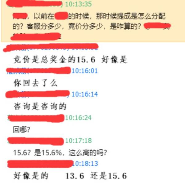 具體的分成,以高姓朋友當(dāng)時項目為例,他的競價提成在13.5%-15.6%之間。