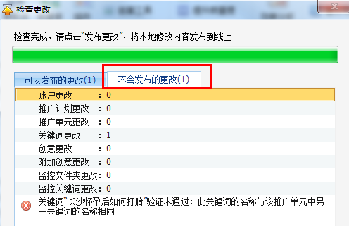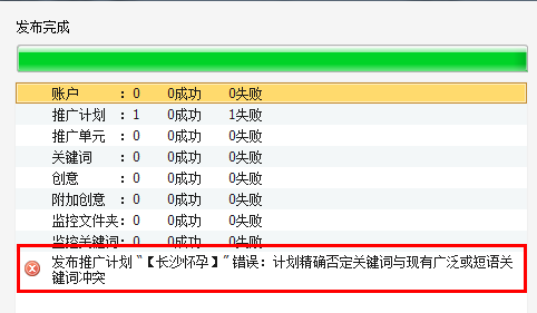 2.如果某關(guān)鍵詞加入了推廣計(jì)劃或推廣單元的精確否定關(guān)鍵詞,系統(tǒng)也會(huì)提示錯(cuò)誤。遇到這種情況,把該關(guān)鍵詞從精確否 定中去掉就行了。